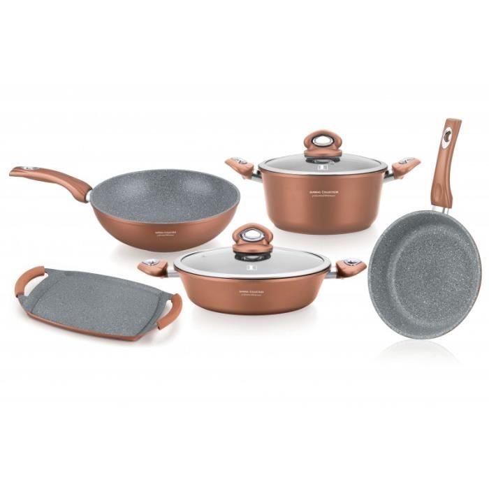 Batterie de cuisine 10 pièces Cuivre Metal, Revêtement Marbre- Aluminium Turbo induction ...